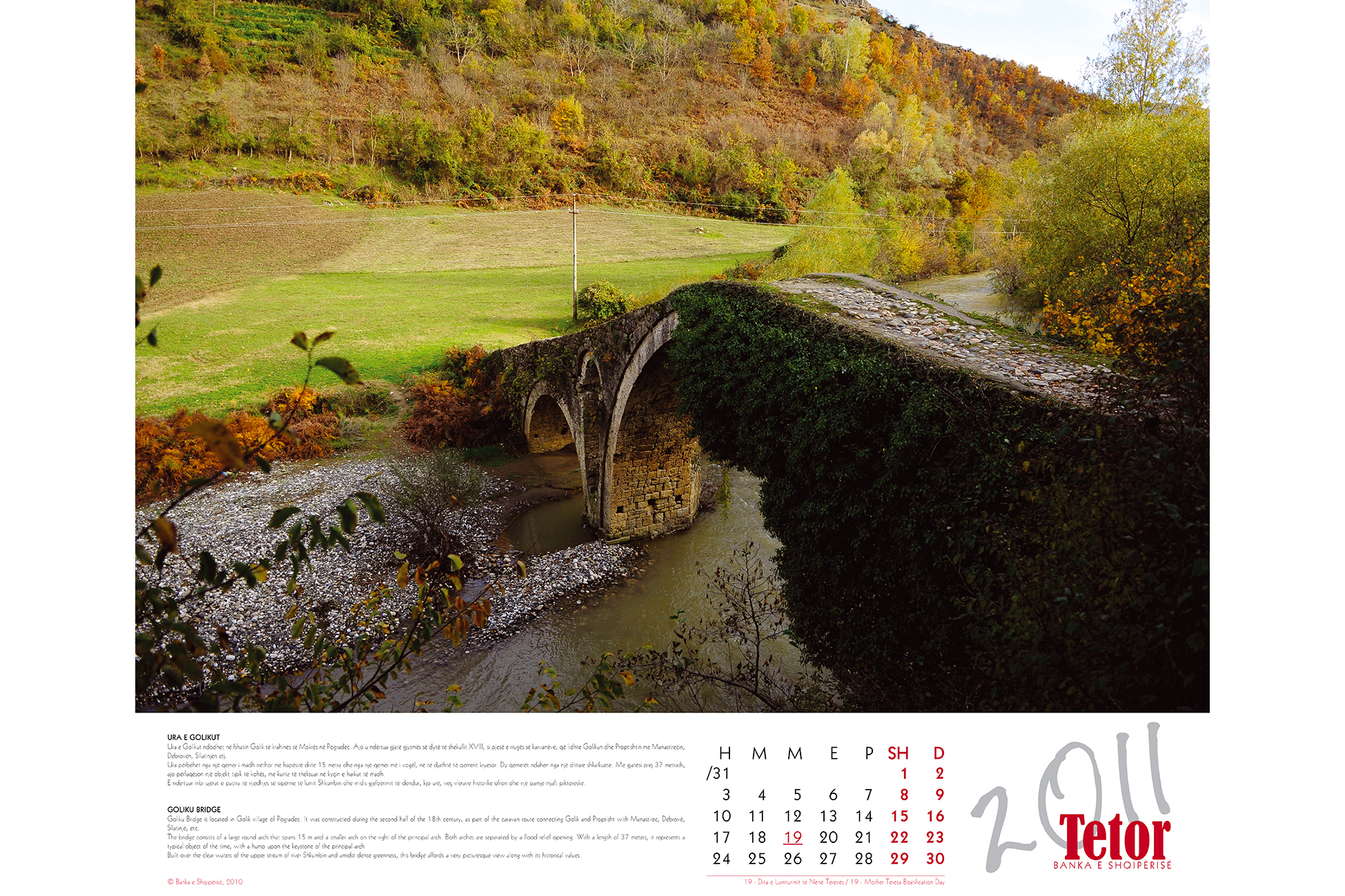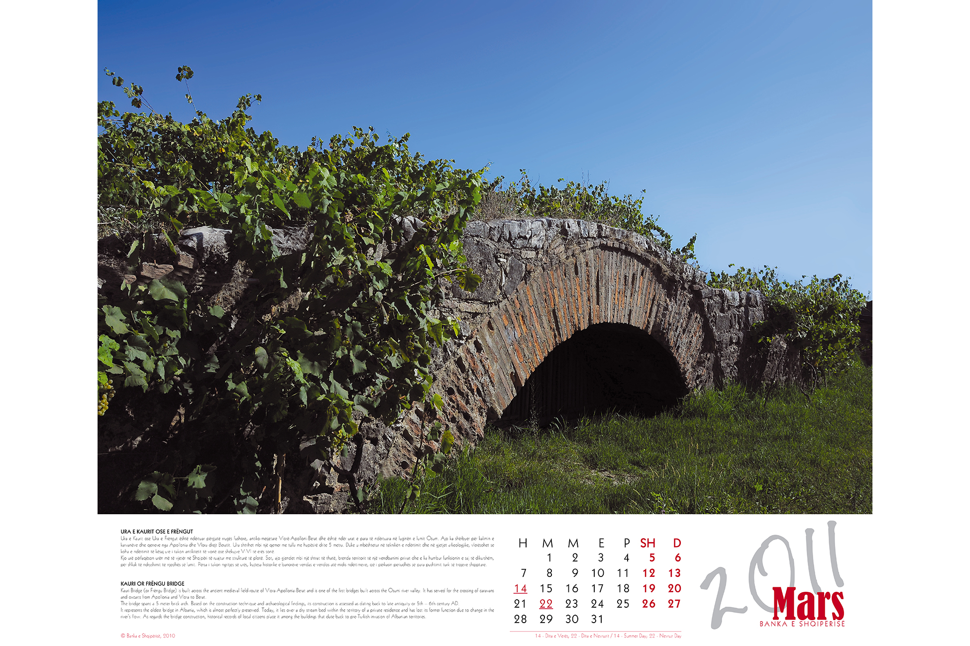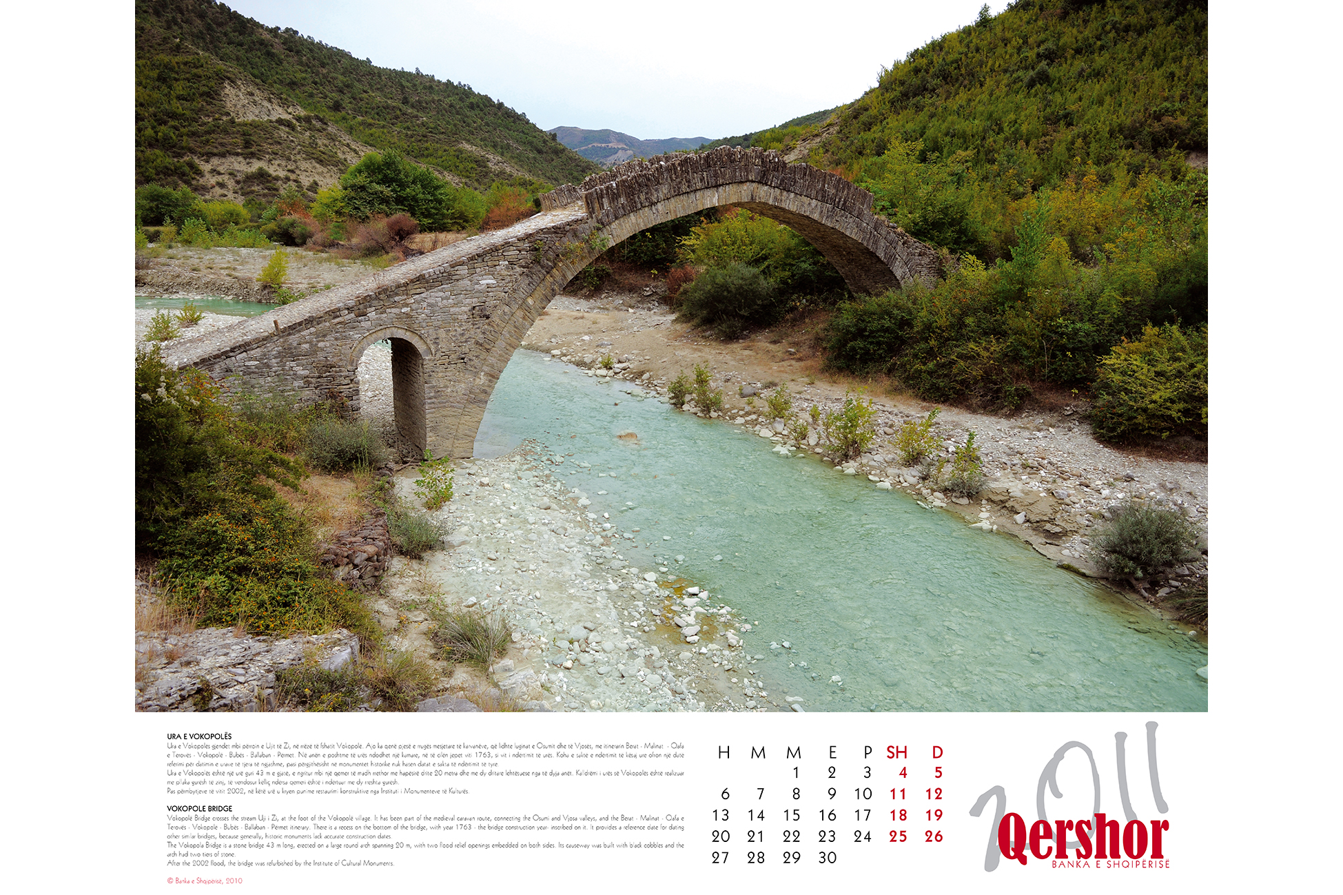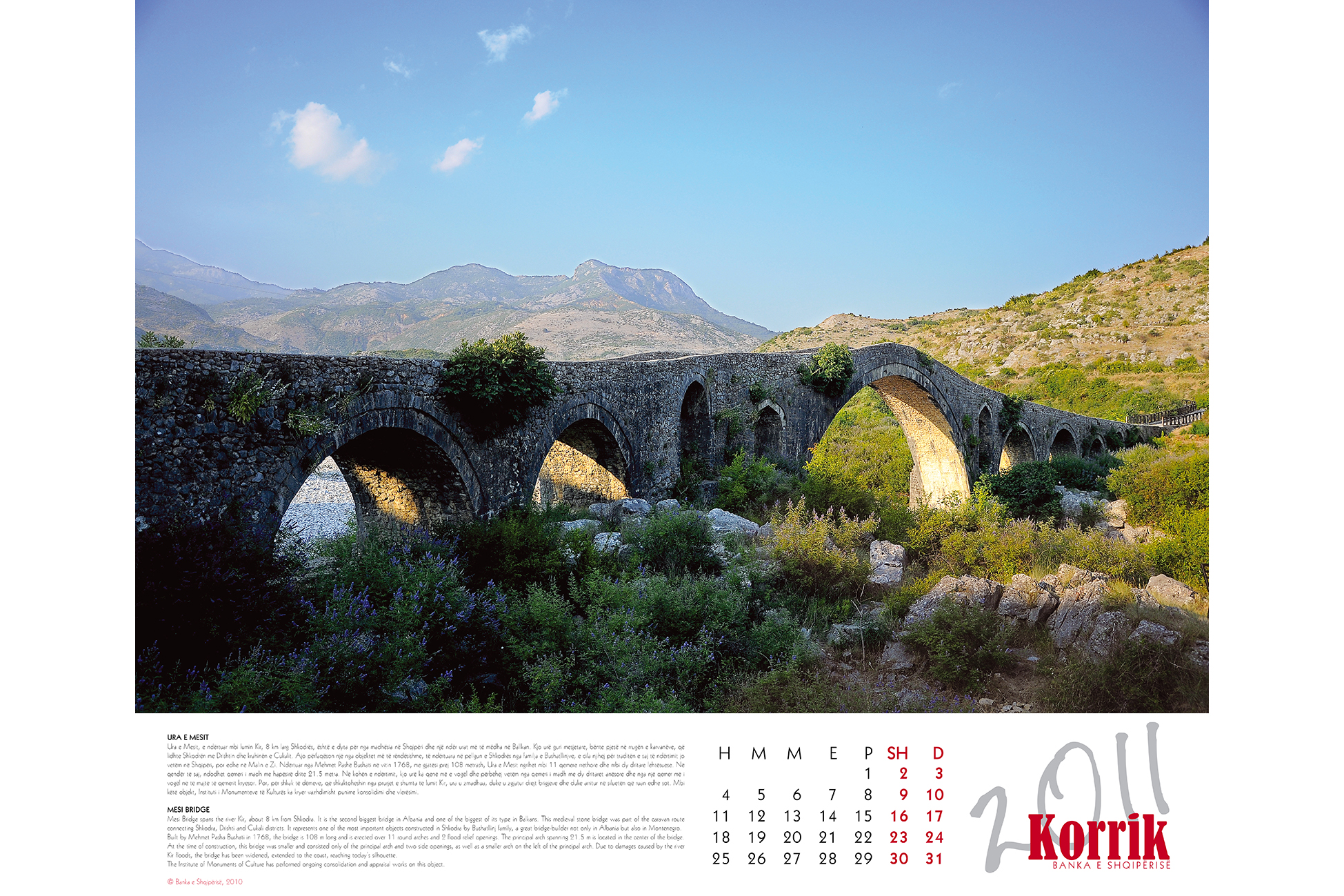 - The Bank of Albania 2011 Calendar has therefore chosen “bridges” as the theme of the year. The virtual concept of bridges of thought is what connects the Bank of Albania with the pubic. It is on these bridges that it conveys the message of stability and long-term prosperity.
