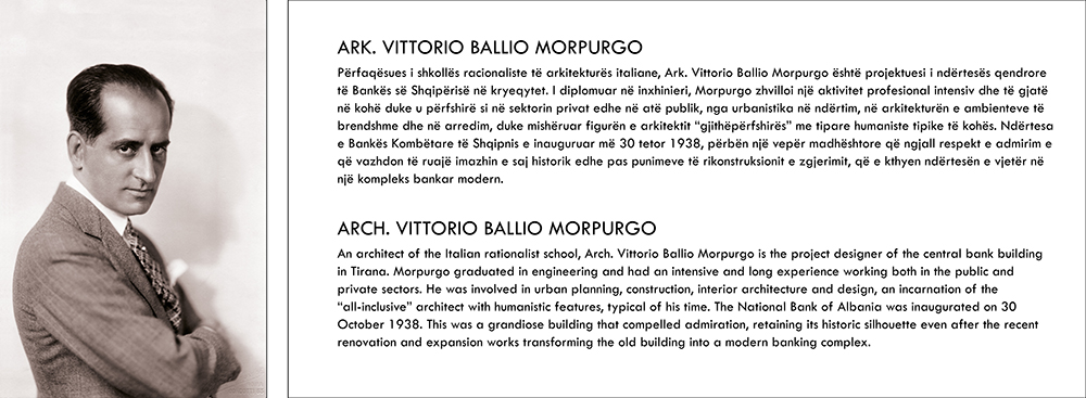 This corner presents a short biography of the Architect Morpurgo. Morpurgo designed the buildings of the National Bank of Albania in Tirana, Durrës and Korça.